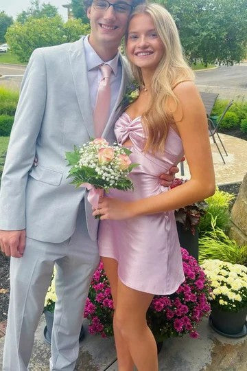 Lumidress Chic Strapless Satin Keyhole Backless Short Homecoming Dress